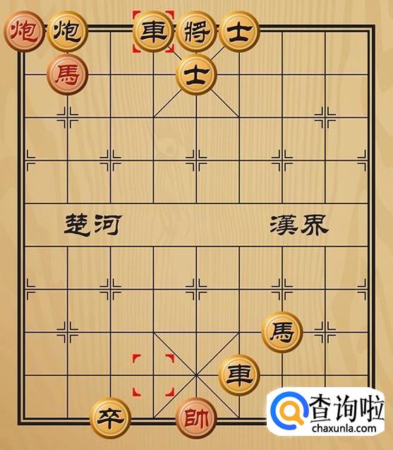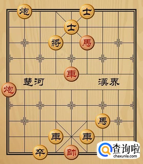 红方先走车五进二将军,黑方只能将4退1躲避。