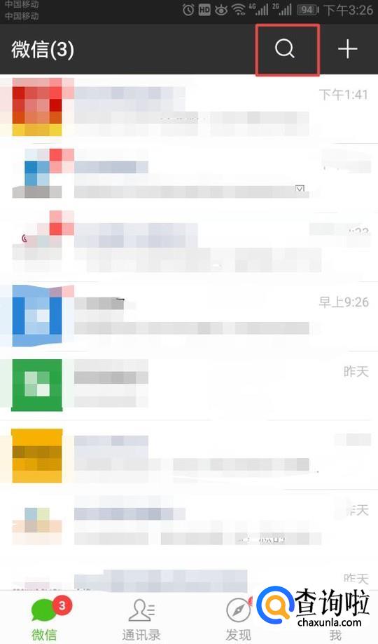 首先,我们打开我们手机上的微信,然后我们点击搜索按钮;