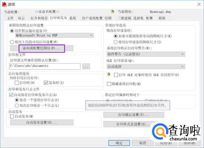 弹出的界面,我们点击添加和配置绘图仪;