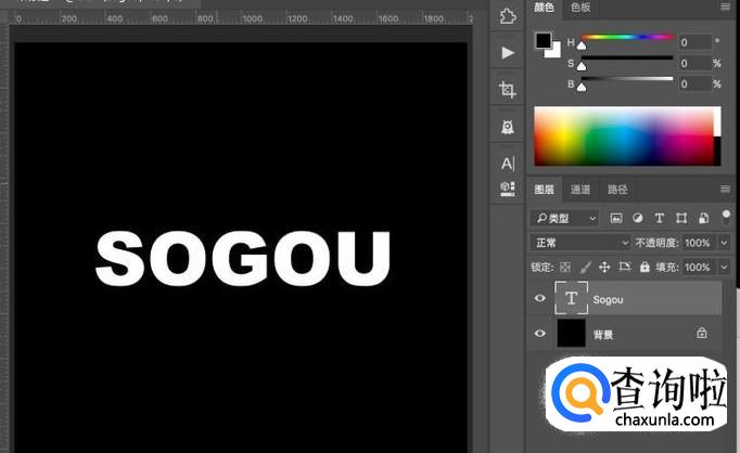 打开电脑中的PS软件,创建画布之后填充黑色背景,输入白色的文本。