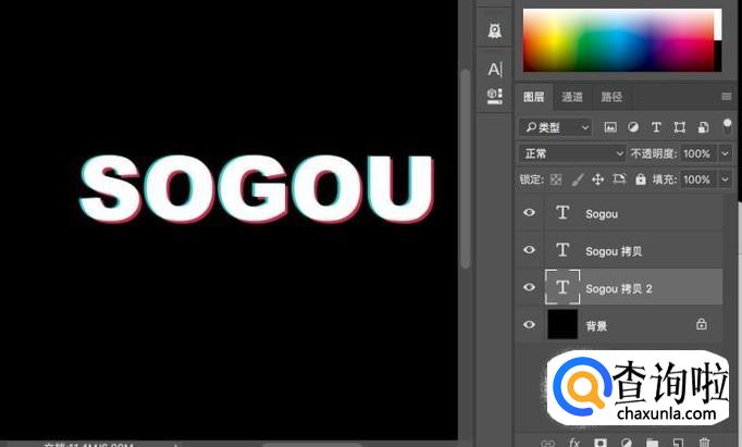 将白色放在最上方,然后浅蓝往左移动,红往右下移动,就做好了抖音风格文字。