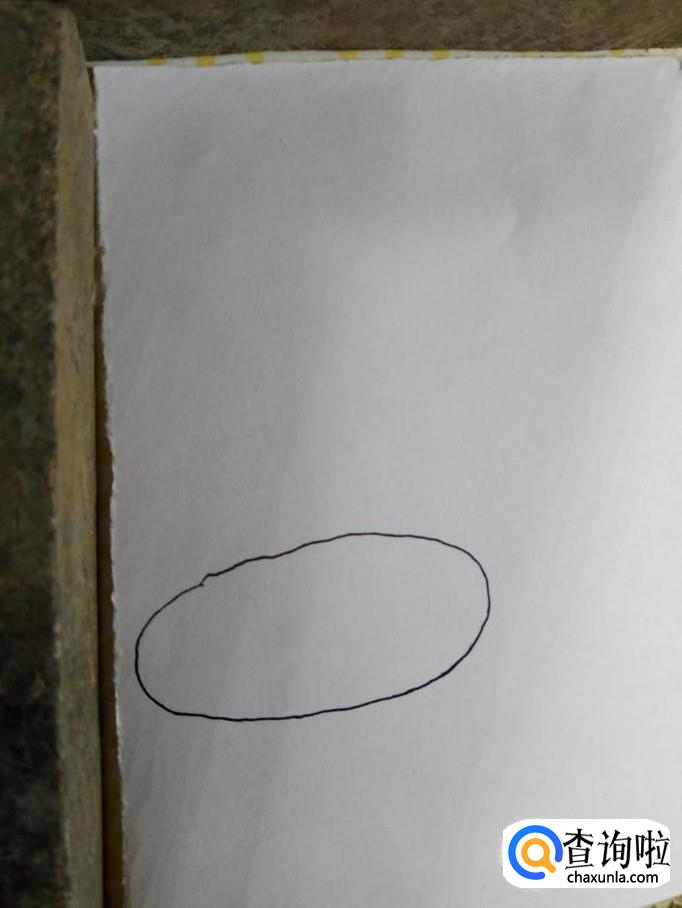 在白纸上画一个椭圆形,可以向右上方稍微倾斜一点。