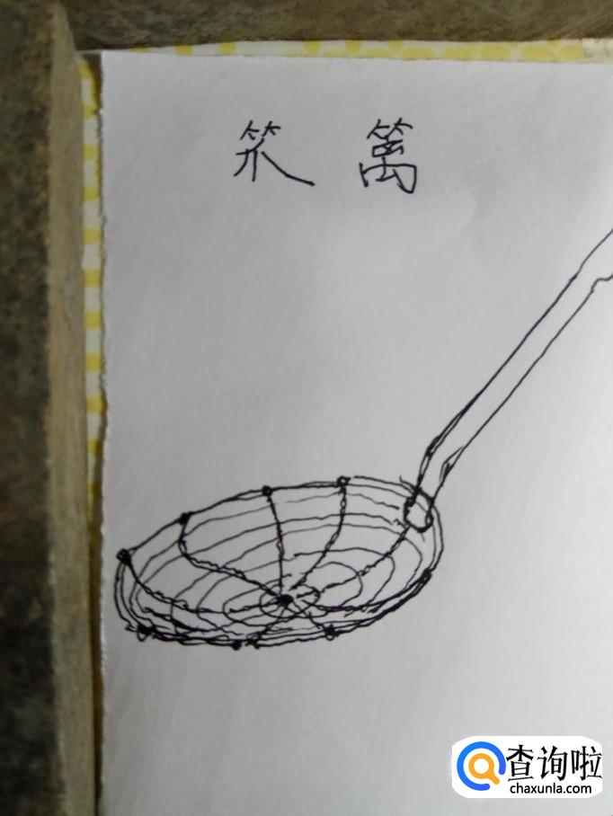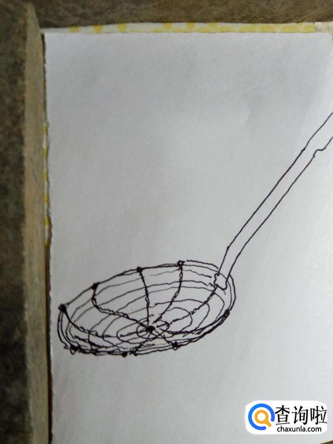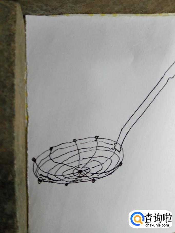 再用一些小的曲线画一下笊篱,让它更有立体感,简笔画笊篱就画好了。