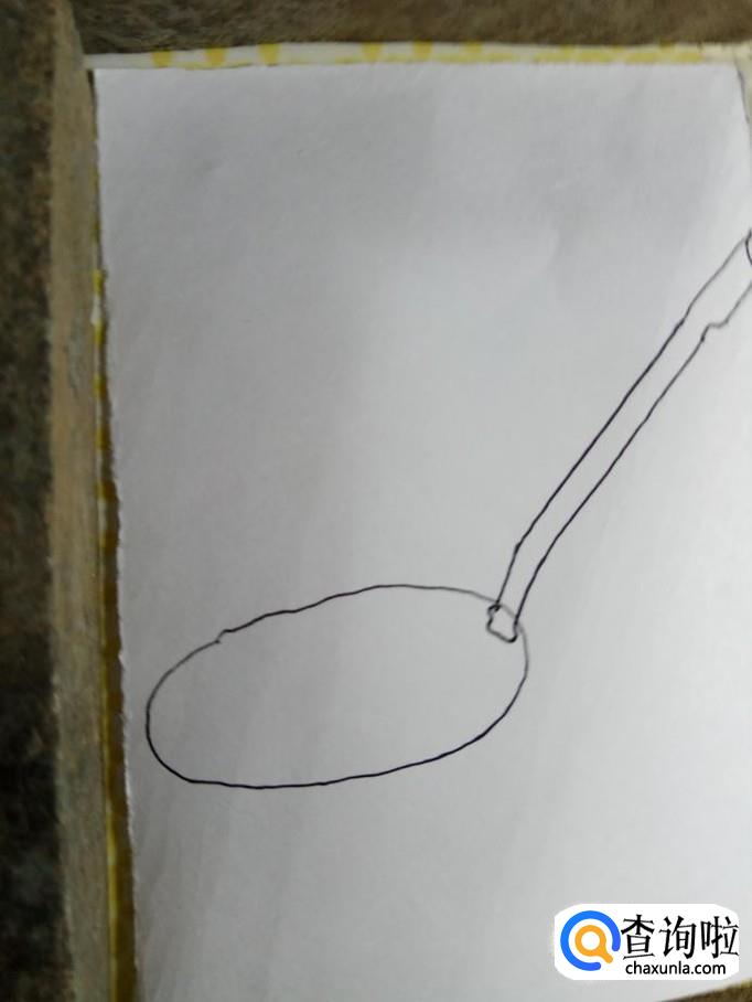向右上方画出两条平行线,这是笊篱的把手,注意和笊篱头部连接关系。