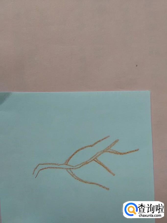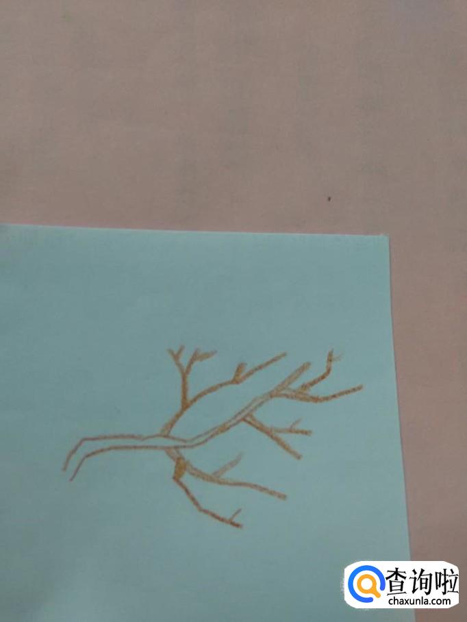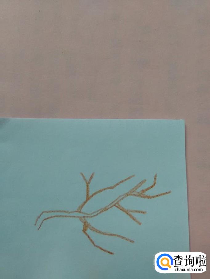 先用笔在纸上画两条相交的折线,表示树枝的主干。