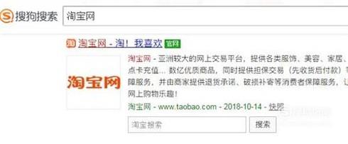 打开搜狗浏览器,在搜索框中输入“淘宝网”,点击官网进入页面。