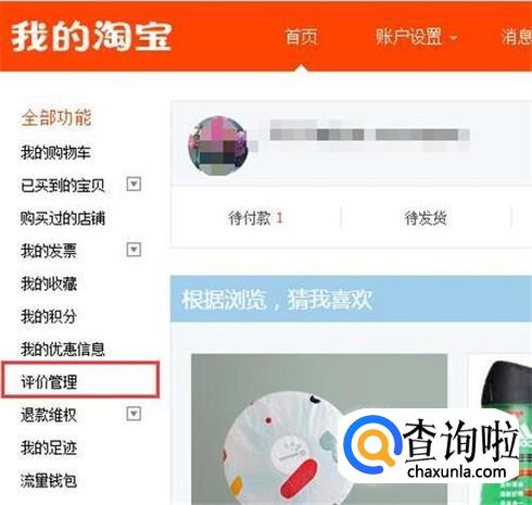 登录成功后,点击“我的淘宝”,点击左测栏目的“评价管理”
