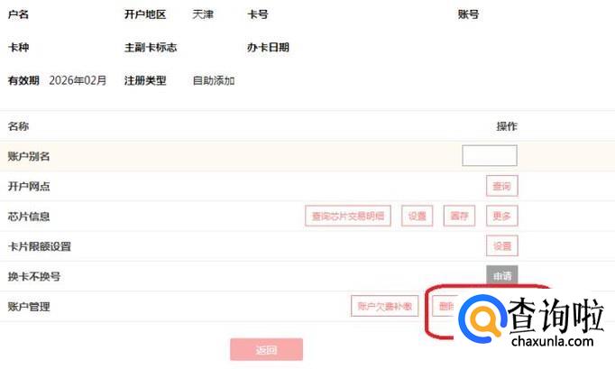 进入了该卡的详情页,最后一个按钮就是“删除注册卡及账户”,点击一下,验证身份后按照提示就可以销户了。