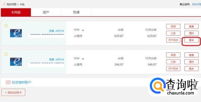 就能看见个人名下的所有工行账户了,如果我要把其中一张卡销户,如图所示,点击该卡右边的“更多”按钮。