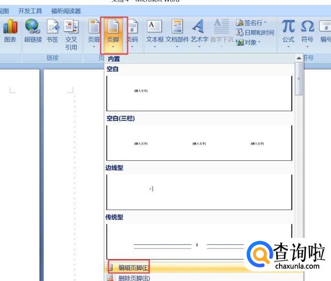 之后我们点击页脚,然后点击编辑页脚;