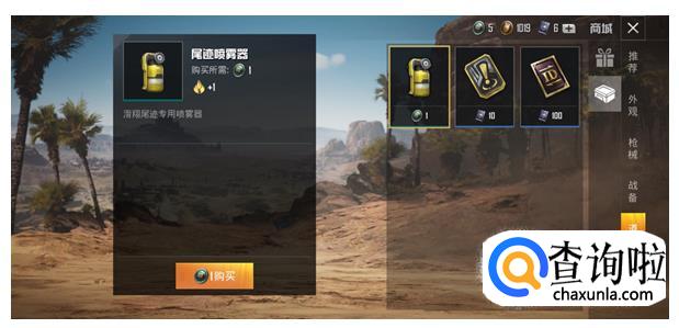 然后每局消耗1个“尾迹喷雾器”,就可以在每局降落的时候,在天空中划出两道烟雾。红色滑翔尾迹,可利用60物资币进行购买。