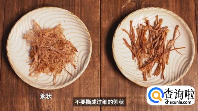 牛肉撕成丝的时候,尽量撕成条状,不要撕成过细的絮状。因为过细的絮状在烤箱中很容易烤焦。
