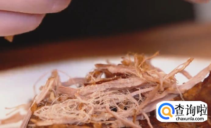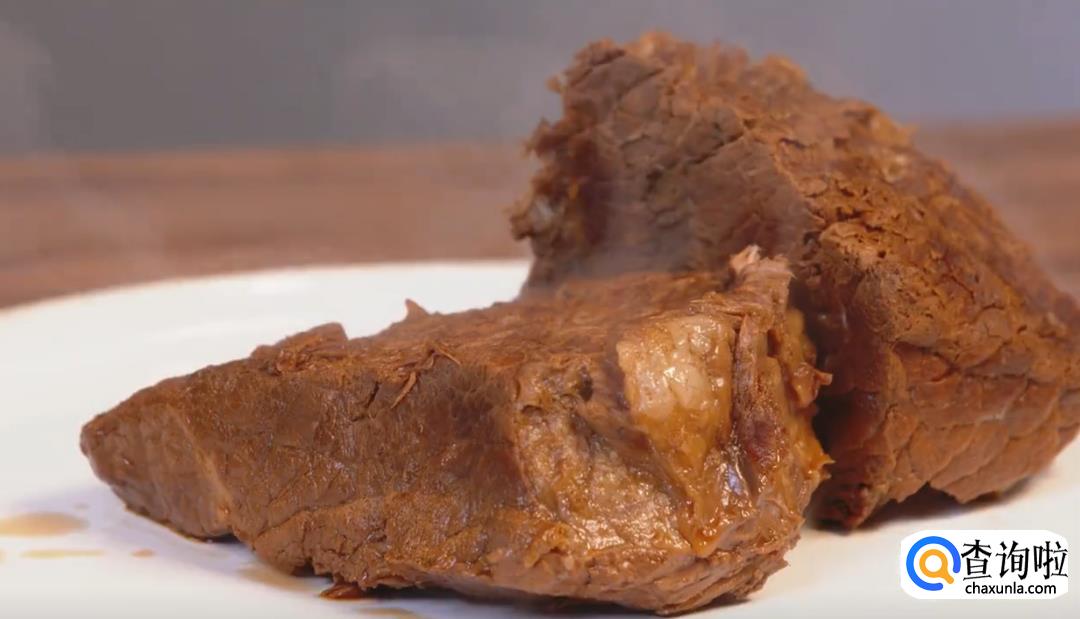 等牛肉彻底放凉,就可以顺纹手撕成丝。