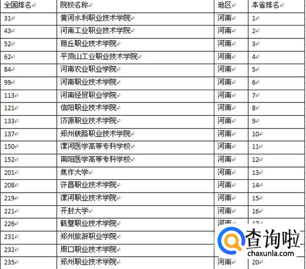 让我们看一看河南省2018最新的高职高专的排名情况吧!