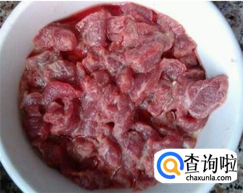牛肉切成薄片,加入适量的料酒和盐,腌制半小时。