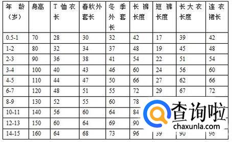 给儿童购买衣服一般是按身高来的,在购买衣服的时候,导购一般会为孩子的身高,然后为你提供适合这个身高的衣服。正常情况下儿童服装尺码是这样的(如图)。