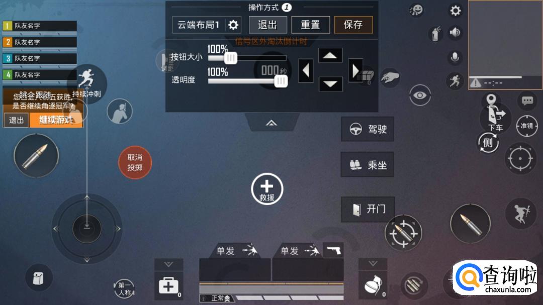 某些按键,我们可以把他的按键大小调小,还可以调透明度以防干扰我们打游戏时的界面,以便我们更好的观察界面。比如右下角足够的空间把蹲,跳,趴隔开并且放大,防止按错。队伍信息、小地图、背包、移动罗盘、持续冲刺键等等都市可以适当的调小,把最好的,最适合你的界面调整出来,这样玩游戏才更有感觉。