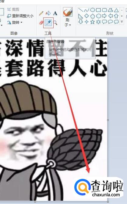 电脑自带画图工具打开带水印的图片,点击吸管按钮,在水印附近鼠标左键点击下,取色。