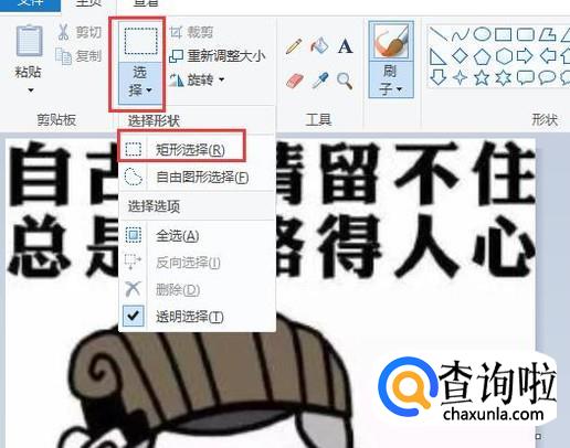 利用电脑自带画图工具打开带水印的图片,点击选择后选择矩形选择。