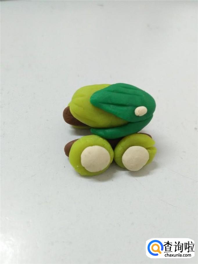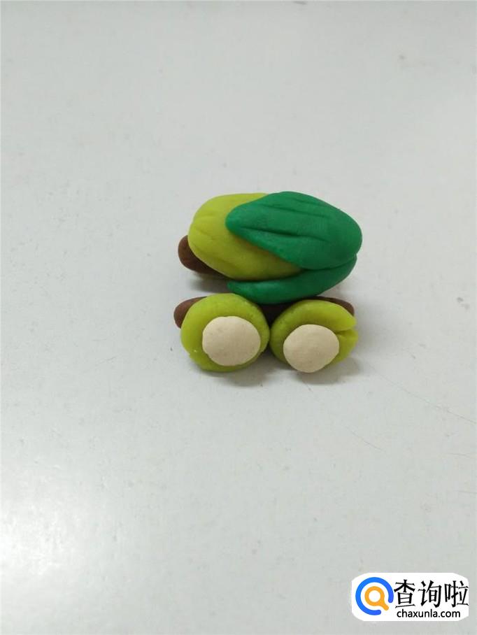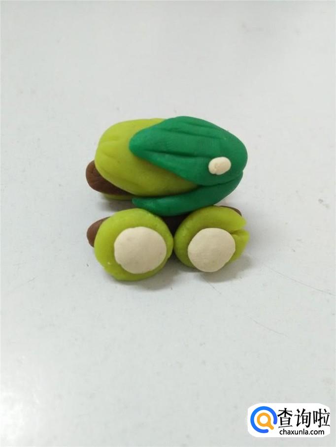 把两个小眼睛粘在玉米叶子上,玉米大炮就做完了。