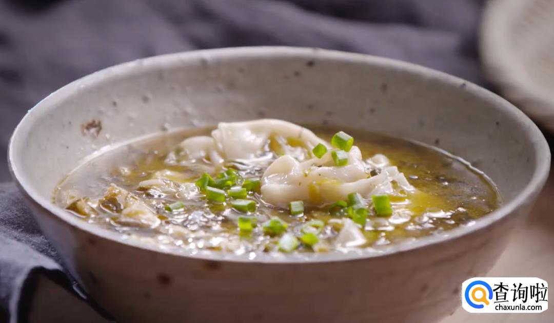 最后将雪菜鱼片汤浇在煮好的馄饨上,黄鱼雪菜大馄饨就做好了。