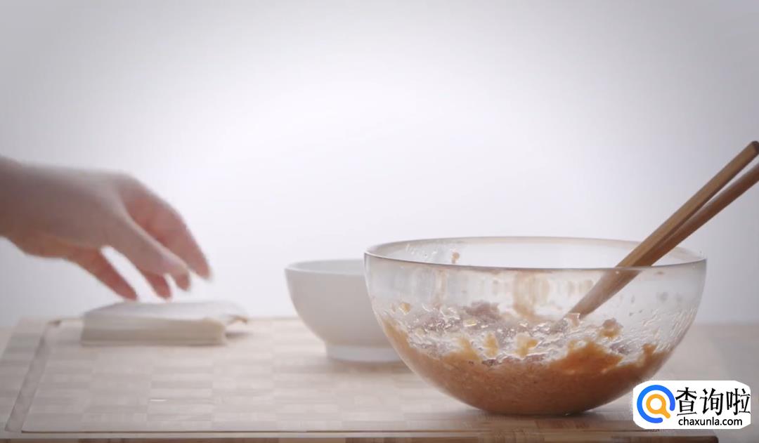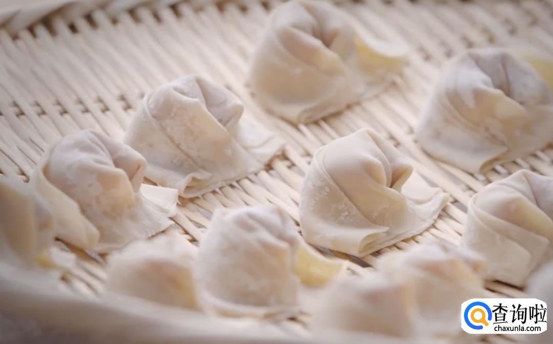包馄饨:将馄饨馅放在馄饨皮中间,然后馄饨皮对折,把对折好的馄饨向内里卷成半圆形,再将两边的馄饨皮合在一起,按紧粘好就完成了。