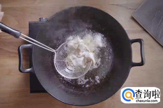 起油锅,将鱼片过油后捞出,