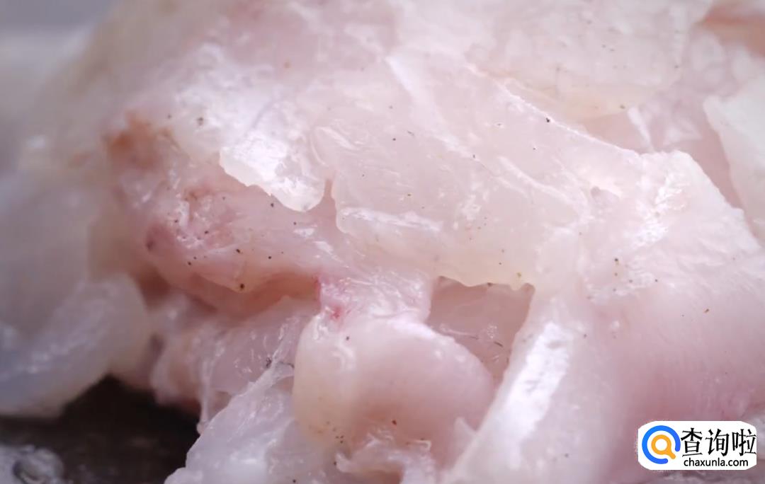 处理鱼片:将剩余的鱼片加盐、黑胡椒粉、淀粉、油抓匀。