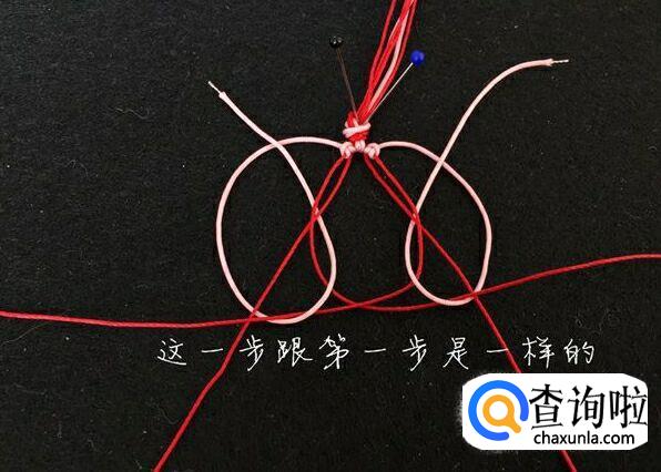 然后我们取最外面的两根红绳使其交叉。