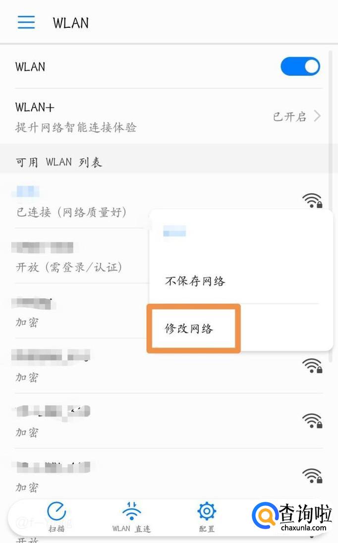 首先打开手机设置,在WIFI中点击自己连接的WIFI。点击修改网络。