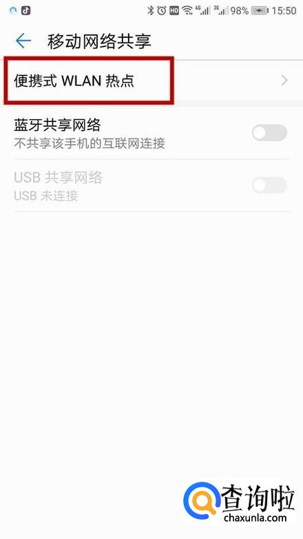 然后就看到了便携式WLAN热点,点击它,如图所示。