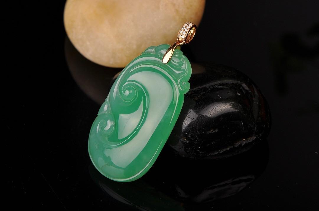 4、从色泽上看,真翡翠对着强光观察,可以看到矿物颗粒的翠色闪光。而假翡翠对着强光观察,会看到杂乱的纹理且浑浊不清,没有光泽感。