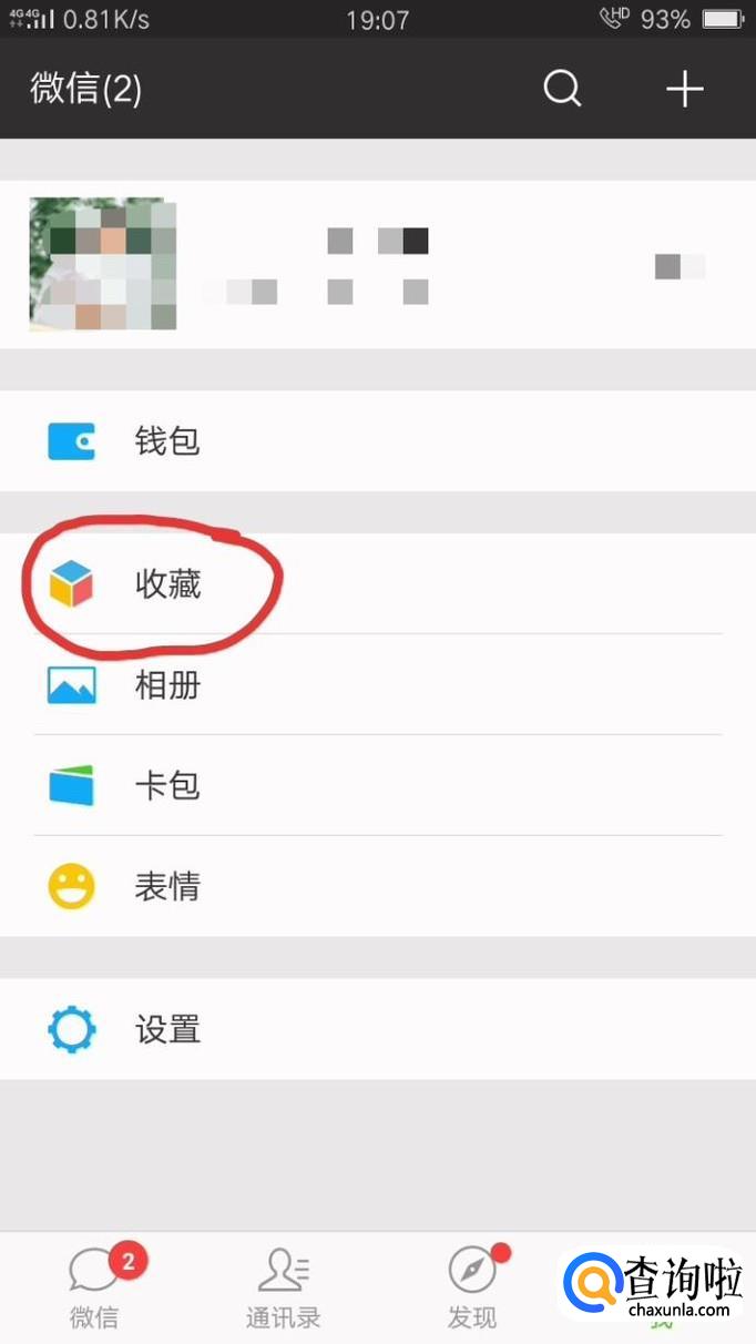 首先打开微信,点击“我的”,再点击“收藏”。