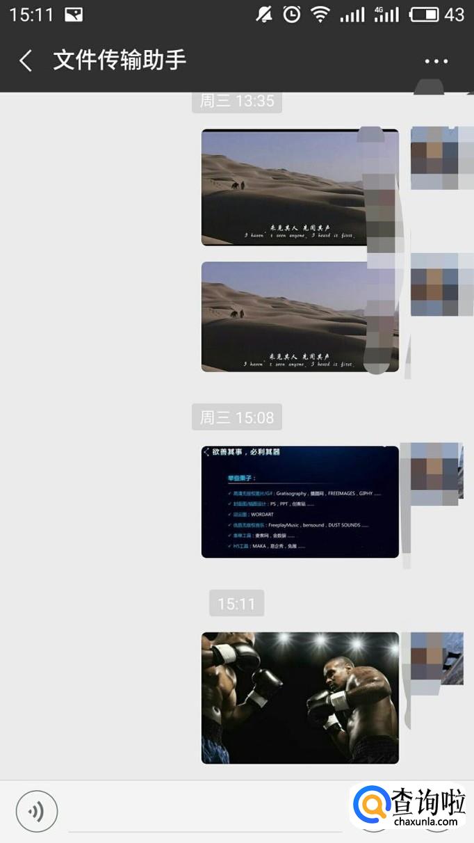 打开微信,选择你要发送图片的窗口界面,小编这里选择的是文件传输助手,如下图所示