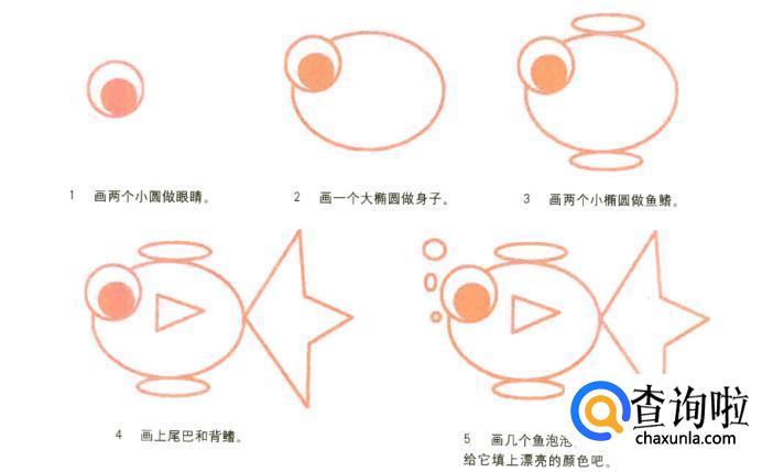 3.再画出两个小圆做鱼鳍