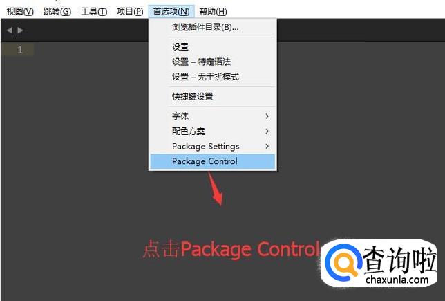 接下来点击顶部的首选项菜单,然后选择下拉菜单中的Package Control选项,如下图所示