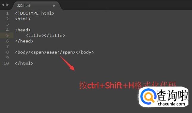 回到刚才新建的HTML文件中,我们按ctrl+shift+h组合键以后你会发现刚才杂乱的代码都立刻被格式化了,如下图所示