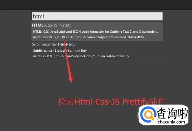 接下来会进入Install Package界面,我们在输入框里面输入html-css-js prettify,选择第一个按回车键进行安装,如下图所示