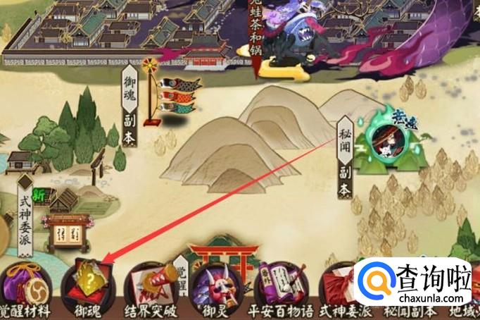 进入之后,选择“御魂副本”,点击并进入,如图所示。
