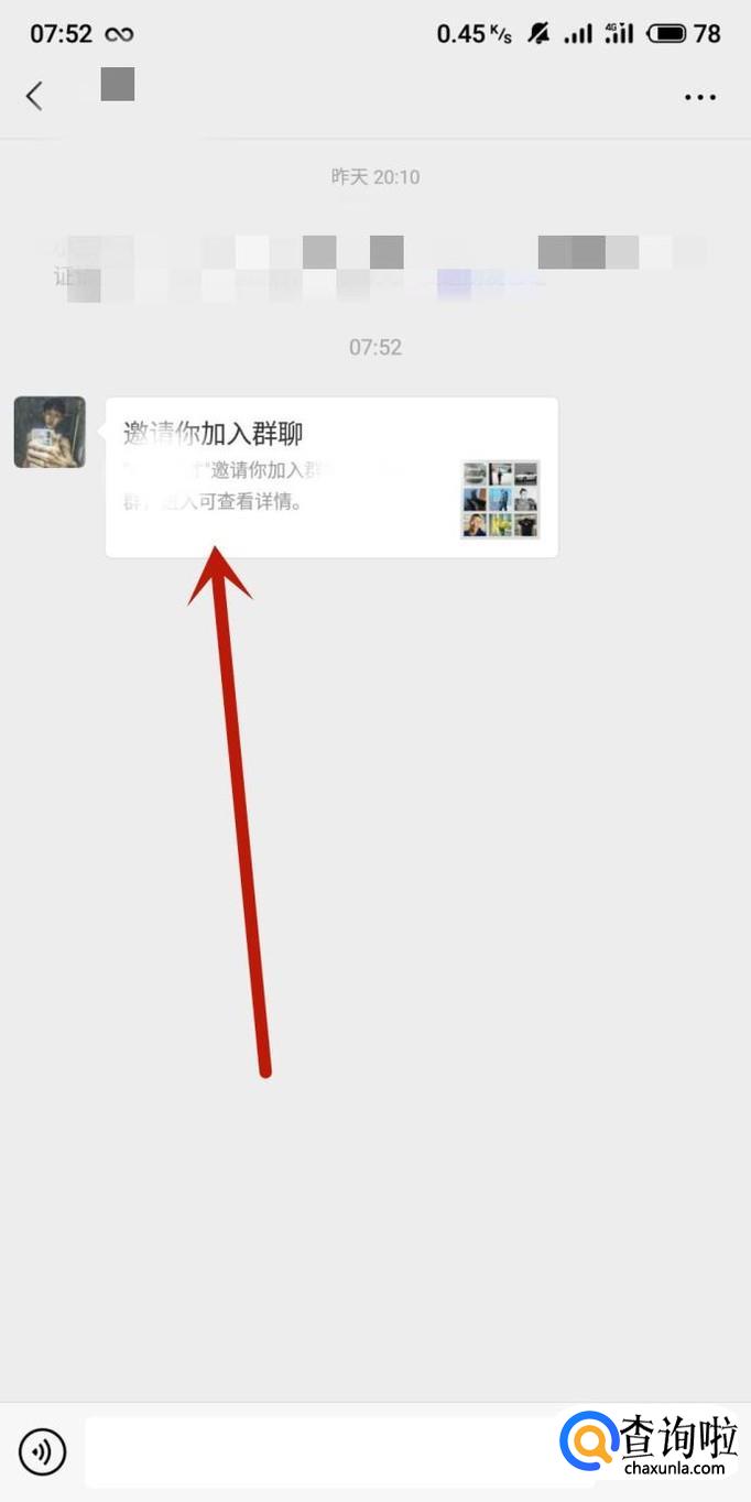 收到对方邀请之后,点击“加群邀请”,如图所示。