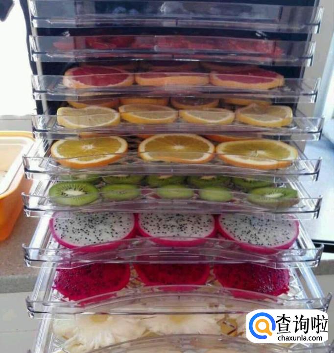 最后把切好的水果片放入到烘干机里面,烘干的时间根据自己决定我们可以中途查看烘干的程度,等水果里面的水分全都蒸发就可以了。