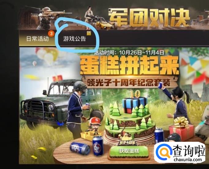 点击界面左上角的“游戏公告”