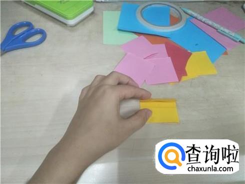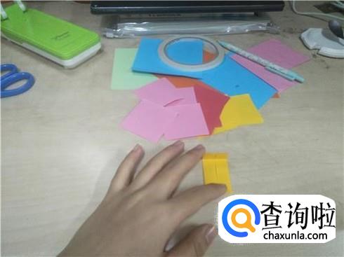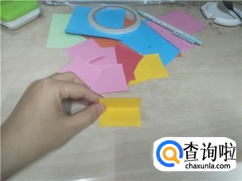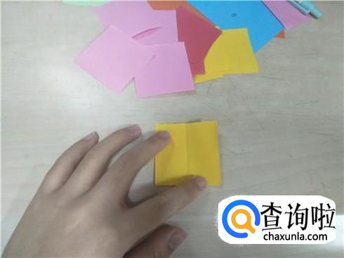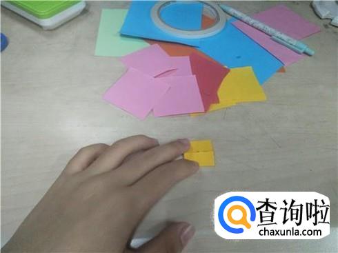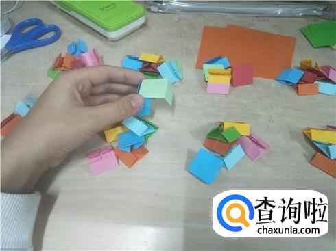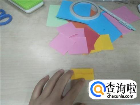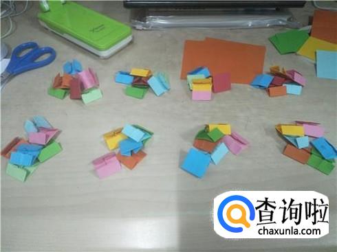 用同样的方法再做18个这样相同形状的小正方形纸片,当然小正方形纸片的颜色要不一样。