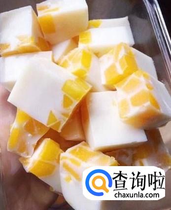 将其放入到冰箱中冷藏几个小时,将其取出切成丁状即可食用,如图所示。