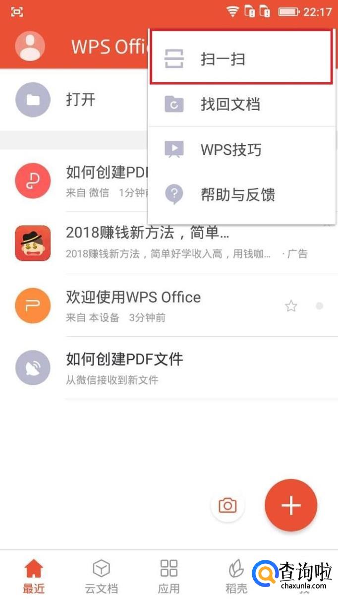 手机内的PDF文件,我们很多时候并不知道确切的位置,wps软件自带搜索功能,点击右上角“扫一扫”,可快速发现手机内所有的文档。