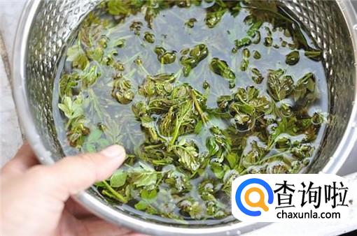 花椒芽最好吃的做法就是凉拌花椒芽,首先我们将花椒芽在水中浸泡十分钟,然后沥干水分备用。