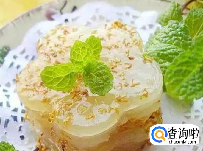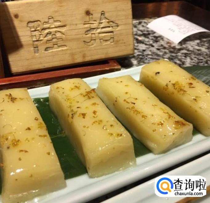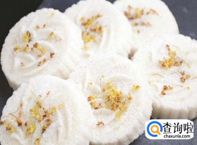 桂花糕。清甜香酥、美味爽口。桂花糕已有三百多年的历史。著名的桂花糕有咸宁桂花糕、南京桂花糕、桂林桂花糕。