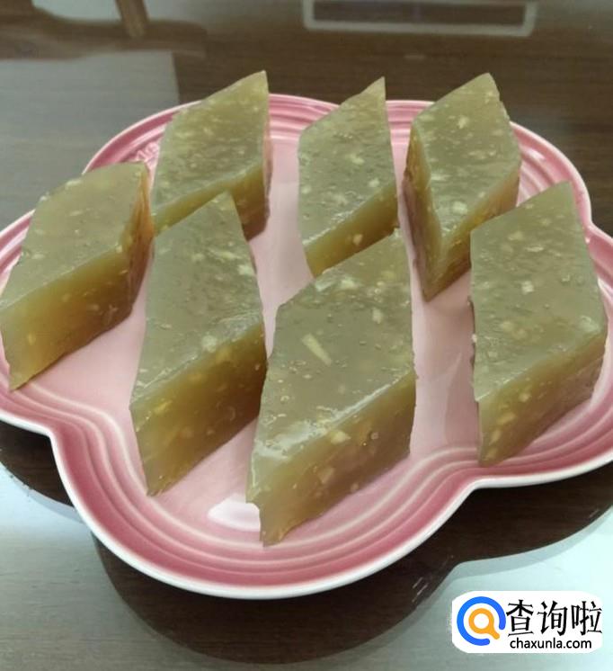 马蹄糕。马蹄糕是一种广东,福州及闽南地区的汉族传统甜点名吃之一。其色茶黄,呈半透明,可折而不裂,撅而不断,软、滑、爽、韧兼备,味极香甜。
