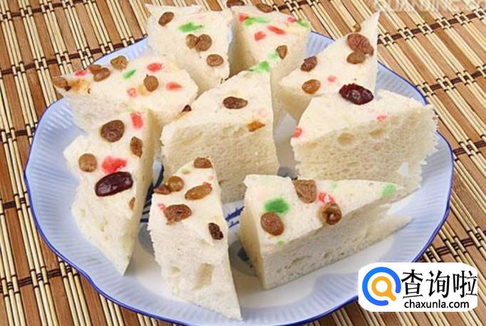 发糕。广泛分布于南方地区,由糯米蒸煮制成。