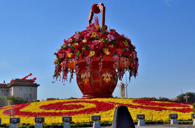5、吉祥花瓣朵朵开,金秋十月国庆来;举国上下齐声贺,千秋万代福无边;山河多姿人欢喜,灯笼高挂喜盈盈;欢歌劲舞不停歇,乐享盛世好年华;红歌频颂祖国好,国运昌盛永繁荣;祝你国庆笑开怀,鸿福齐天乐逍遥!